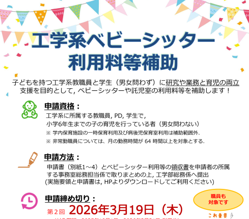 Support for Balancing Research and Childcare: Dispatching Support Staff, Providing Subsidies for Babysitters and Childcare Fees, Use of Rest Rooms and Childcare Rooms.